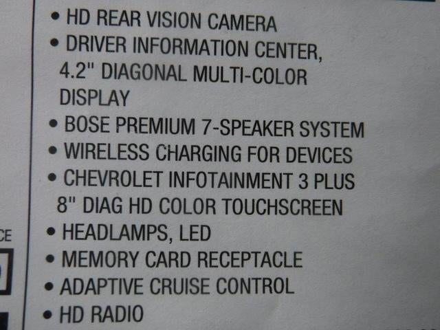 - Audio system, Chevrolet Infotainment 3 Plus system 8" diagonal HD color touchscreen, AM/FM stereo, Bluetooth® audio streaming for 2 active devices, Apple CarPlay and Android Auto capable, voice recognition, in-vehicle apps, cloud connected personalization for select infotainment and vehicle settings.